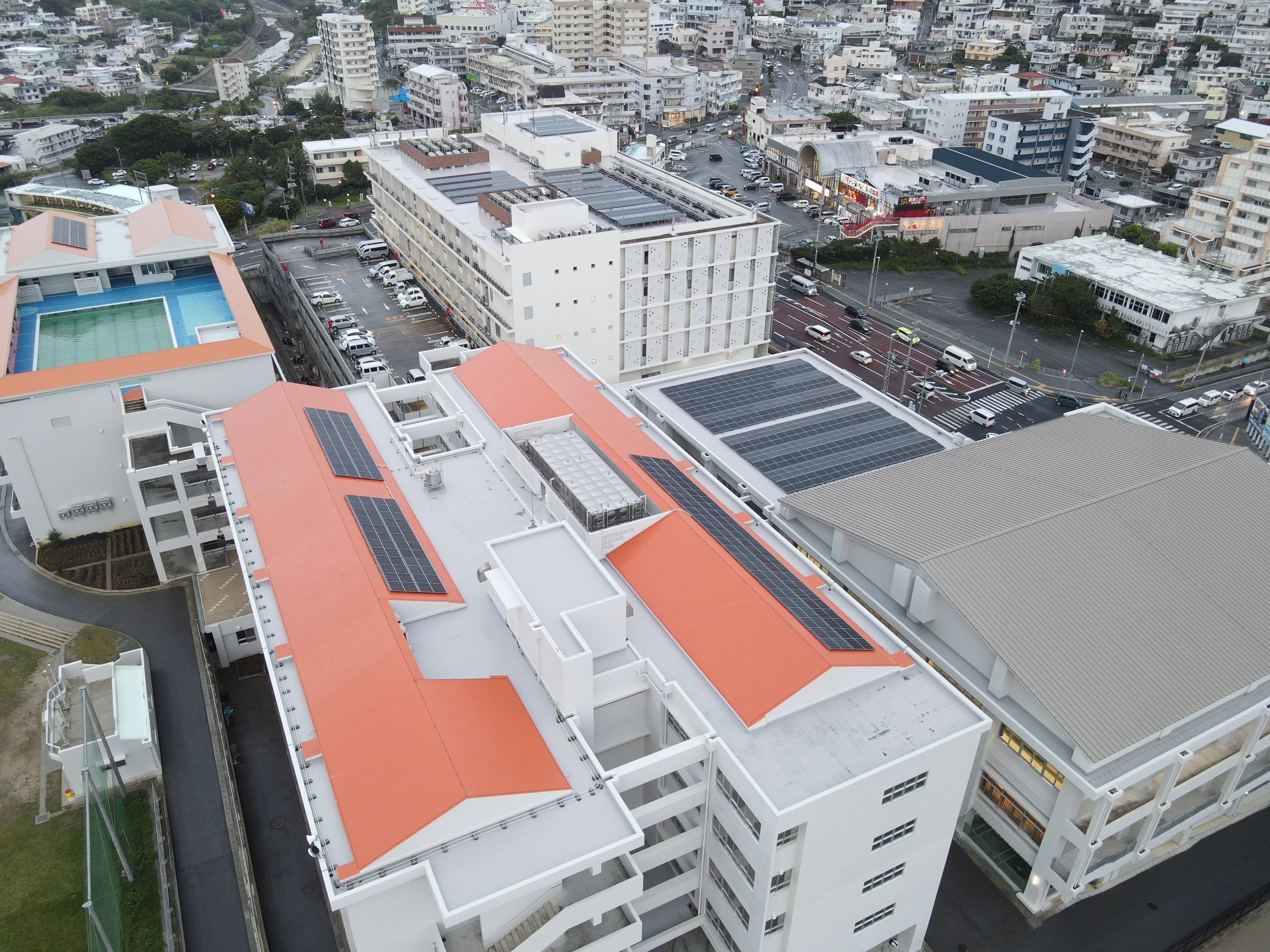 おきでんグループ所有の太陽光発電設備と蓄電池を、お客さまの施設に初期費用負担ゼロで設置し、発電した電気をご利用いただくサービスです。