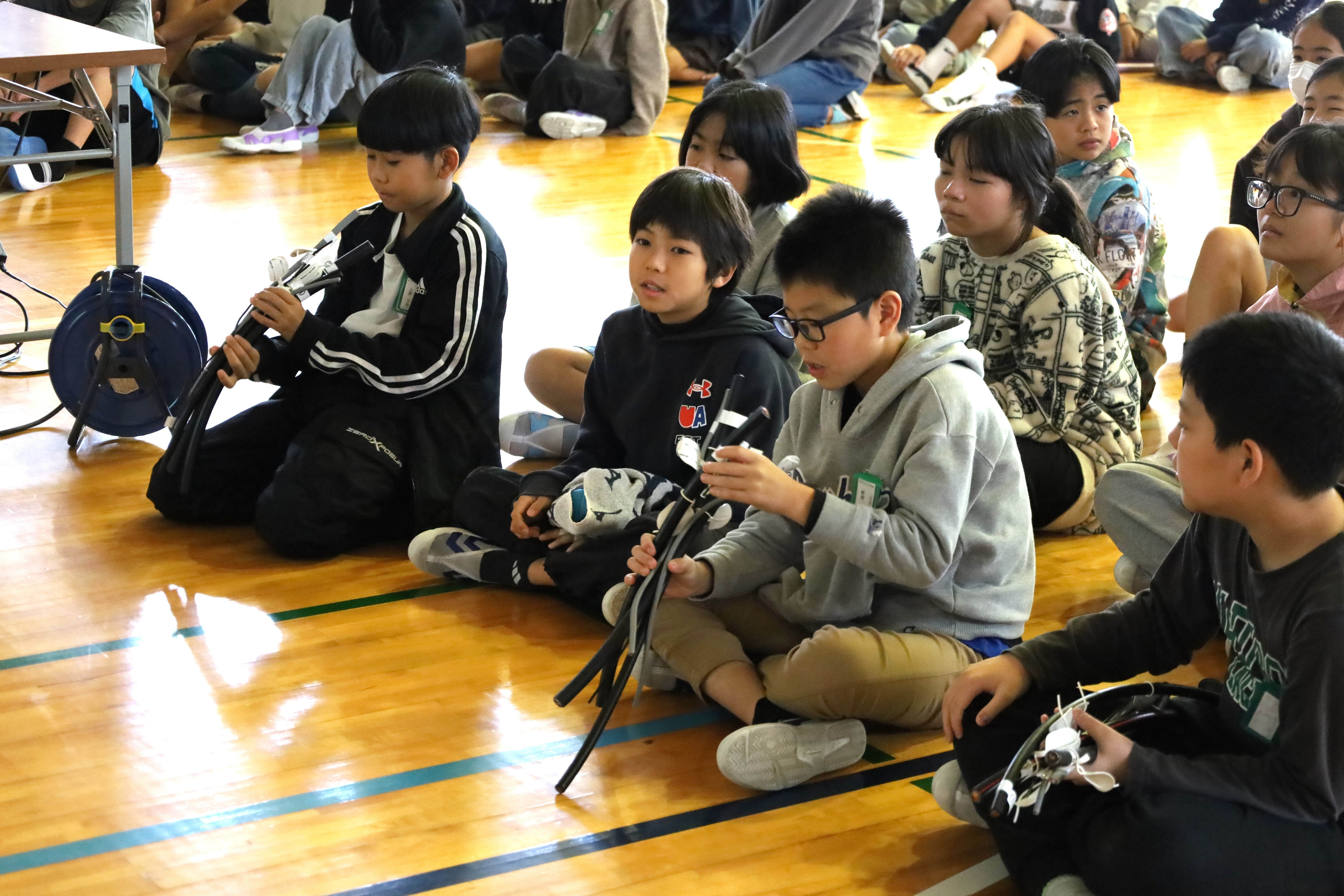 今回の出前授業では、「身近な電気について学ぼう~電気はどこからやってくるの~」と題し、”自分たちの学校に設置されている太陽光パネルと蓄電池”を教材として活用することで、再生可能エネルギーや防災について学ぶ機会を提供しました。