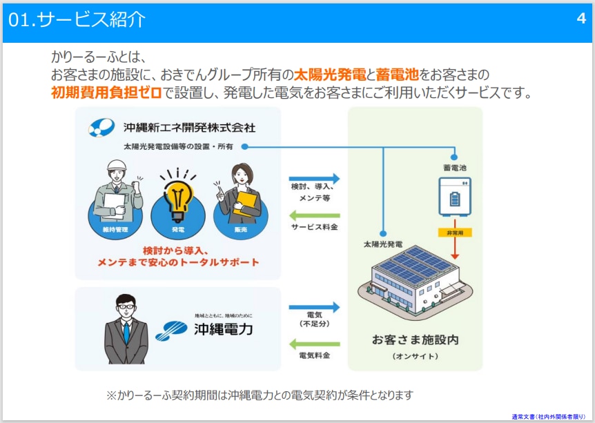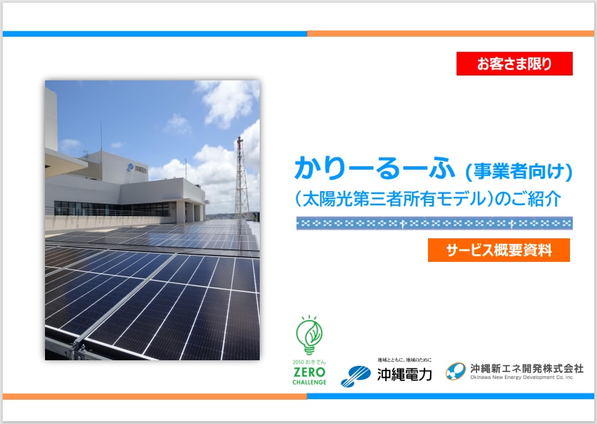 ・ 脱炭素社会に貢献したいが何をしていいか分からない ・太陽光導入を検討しているが、初期投資の負担が大きい ・パネルの維持簡易や撤去が面倒 ・災害時でも必要最低限の事業を継続したい